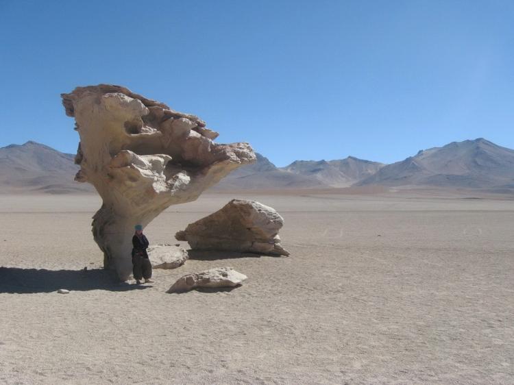 Salar de Uyuni (Spanish Salar de Uyuni) - a dried-up salt lake in the south of the desert plain in the Bolivian Altiplano, at an altitude of 3,650 m above sea level. 10 582 sq km area has and is the largest salt marsh in the world. The main minerals - halite and gypsum. The inner part is covered with a layer of salt thickness of 2.8 m. During the rainy season, salt marsh is covered with a thin layer of water and is transformed into the world's largest mirror surface. About 40 thousand years ago this area was part of Lake Minchin (itself detached from the ancient lake Ballivyan).
